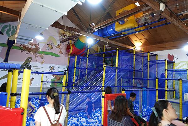 另一項吸引幼童的設施是幼兒室內體驗館,有冷氣哦,讚!螺旋管溜滑梯與光影溜滑梯球池便讓小妹爬上爬下個不停,一旁還有彈簧跳跳床,這下子真是玩瘋了。